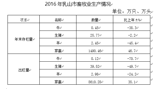 【概况】 2016年,乳山市调整优化农业产业,扶持龙头企业发展,推进农业标准化生产,全市农业和农村经济发展势头良好。全年实现农业总产值93.2亿元,比上年增长5.9%。其中农业47.92亿元,增长4.2%;林业1320万元,增长9%;畜牧业16.65亿元,增长11%;渔业26.7亿元,增长6.8%;农林牧渔服务业1.8亿元,增长12.5%。全市农村经济总收入493.51亿元,农民人均纯收入16301 元, 比上年增长4.50 %和5.38 %。