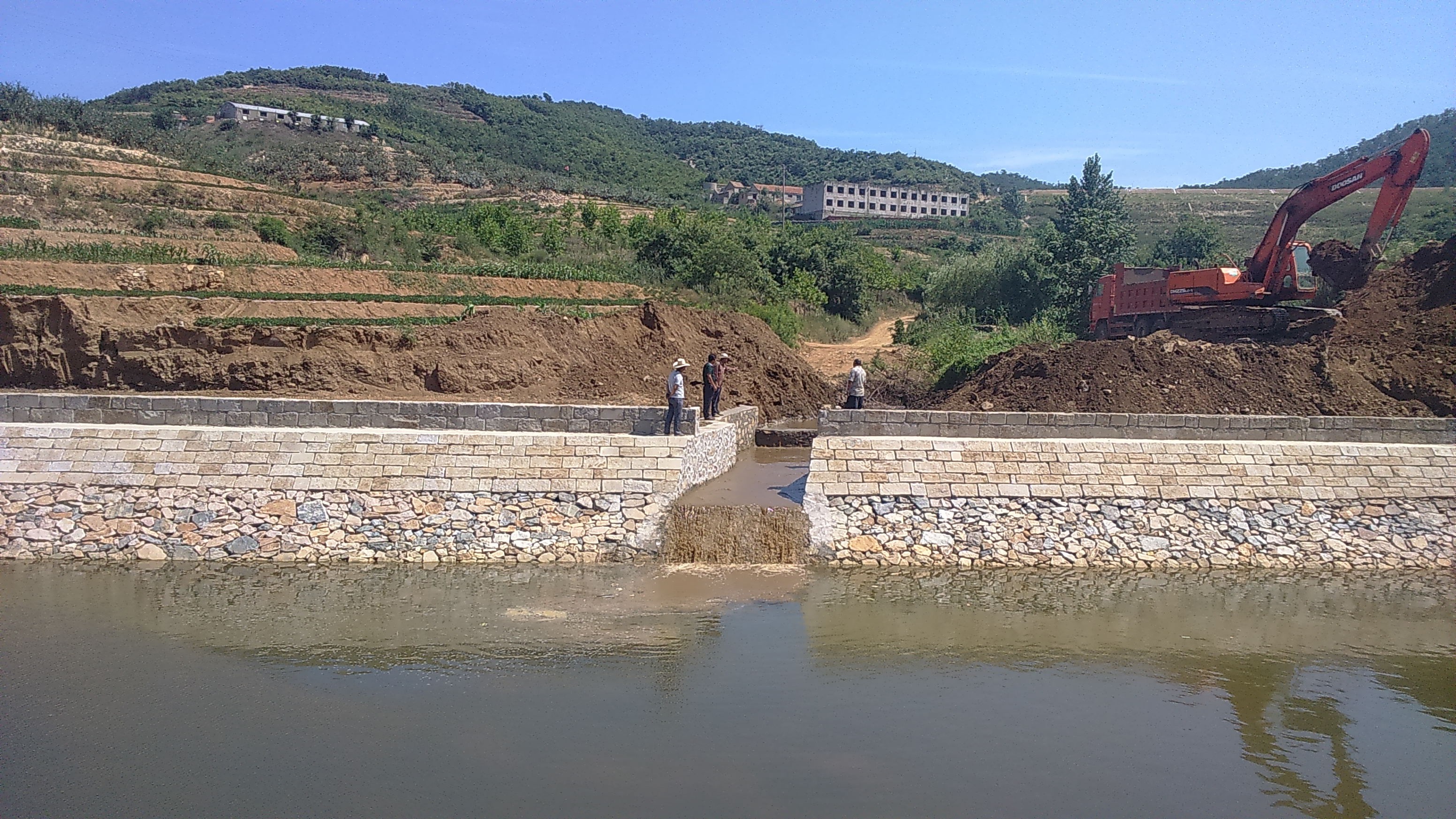 【概况】2016年,乳山市水利局积极应对水资源短缺不利因素,坚持突出重点、多措并举、高效运转,集中力量组织实施重点水利项目,全市水利工作稳步推进。当年共投入水利建设资金1.08元,完成各种水利工程建设8项。 【乳山河地下水库建设项目开工】 2016年1月,《乳山河地下水库可行性研究报告》通过山东省专家评审,3月份威海发展和改革局对可行性研究报告进行批复,6月28日威海市对初步设计进行批复,11月25日完成施工、监理开标工作,12月4日工程正式开工。乳山河地下水库总库容2197万立方米,建设项目涉及截渗墙7600米、橡胶坝3处、生产桥1座等,预计2018年12月完工。 【花家疃水库引调工程完工】 2016年,乳山市遭遇极端干旱天气,年累计降雨量448.8mm,至10月31日,龙角山水库水位28.50米,蓄水量仅373万立方,城市居民生活和工业生产受到考验。水利局投资2689.88万元,开展花家疃水库引调工程建设,建泵站2座(首端泵站1座,加压泵站1座),铺设直径600mm球墨铸铁管道27km,日供水约30000方。工程经过4个镇、24个庄,12月18日正式通水。 链接:花家疃水库位于乳山市冯家镇花家疃村北,黄垒河支流清水河中游,是以防洪为主,兼顾灌溉、养殖等综合利用的重点中型水库。水库于1970年5月动工,1971年5月竣工。2009年8月进行病险水库除险加固,2010年11月加固完成,除险加固工程总投资2662万元。水库流域面积81平方公里,总库容1894万立方米,兴利库容558万立方米,死库容37.2万立方米。流域多年平均降雨量750.1毫米。水库保护下游冯家和南黄两镇,3.7万人、3.5万亩耕地,桃威铁路、309国道和青威高速公路三条重要交通干线。2016年,花家疃水库成功争创省一级规范化管理单位。 【成功争创小型水库管护示范县】 2016年,编制完成《乳山市小型水库管理体制改革实施方案》,经市长办公会研究通过。落实全市106个小型水库管护人员,配备通讯工具,实时传输工程图片,形成网格化管理,确保防汛工作不留死角。12月份,成功争创山东省小型水库管护示范县。 【实施民生水利工程61项】 2016年,投资1100万元,对45个省定贫困村实施水利项目61项,实现贫困村村村有水利项目。投资475万元,实施20个库区移民项目,解决库区村饮水、交通及水利设施配套问题。投资286万元。实施农村规模化供水工程,徐家规模化供水工程管网延伸6个村;单村水质处理93个村。筹集资金60万元,解决15个特别缺水村庄饮水问题。 【小型农田水利项目县工程通过威海市级验收】 2016年,投资2110万元,实施小型农田水利项目县工程,发展高效节水农田700公顷,重点向茶叶、蓝莓、大姜等高效农业产业倾斜,解决灌溉问题。12月通过威海市级验收。 8月12日,下初镇上初村小型农田水利项目县工程。(刘波摄)